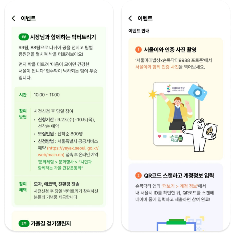 - 이벤트 참여: 손목닥터 9988에서는 종종 이벤트를 진행하는데, 이벤트에 참여하여 미션을 수행하면 추가로 포인트를 획득할 수 있습니다.