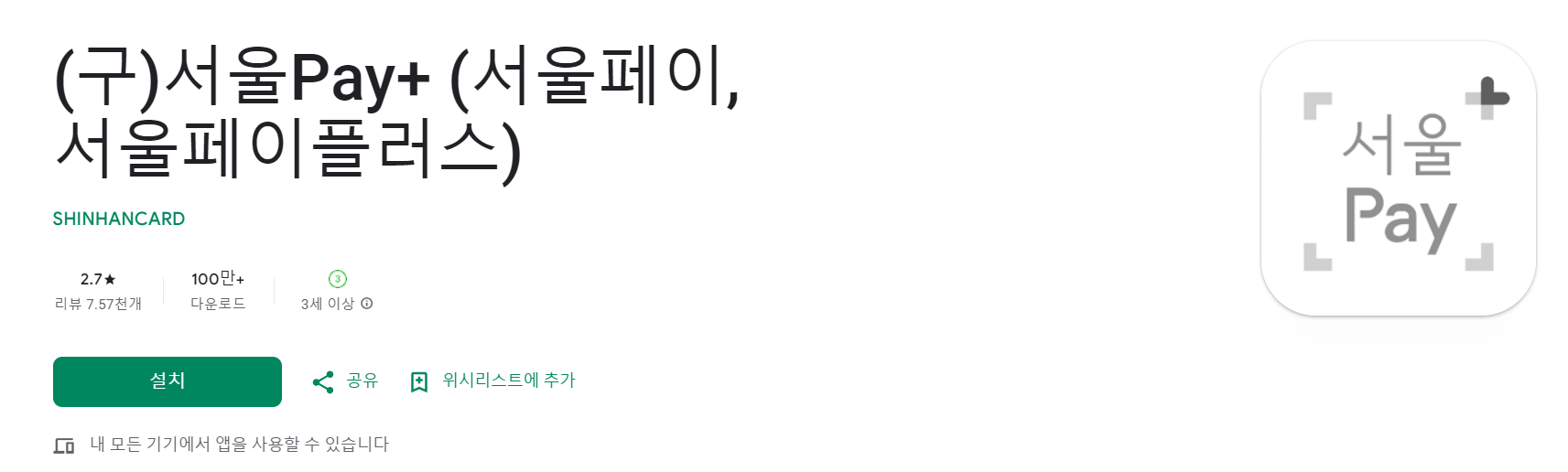 1. 현금처럼 사용하기 위해서는 서울페이 앱 설치를 해주셔야 합니다.